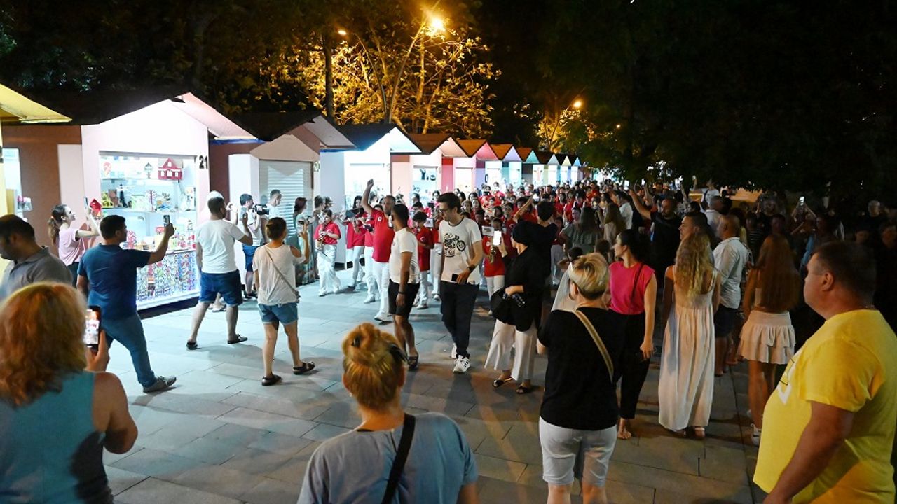 Liman Caddesi’nde ilçede tatil yapan yerli ve yabancı misafirlere mini bir konser veren Cumhuriyet Bandosu, daha sonra Şef Furkan Üstündağ eşliğinde Mustafa Ertuğrul Aker Parkı’na geçti.